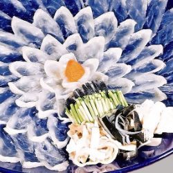 - 一年中、天然とらふぐ入荷しております。是非御賞味ください。