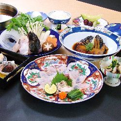 下関南風泊(はえどまり)市場から一年中天然とらふぐを直送しており、季節を問わず本物のふぐ料理が味わえます。又、玄界灘のおこぜ、活イカ、大分県佐賀の関の関あじ・さばも好評です。
