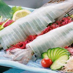 - 玄界灘のヤリイカを毎日直送したおります。透き通った身と、生き作り独特の食感・あま味をご賞味ください。