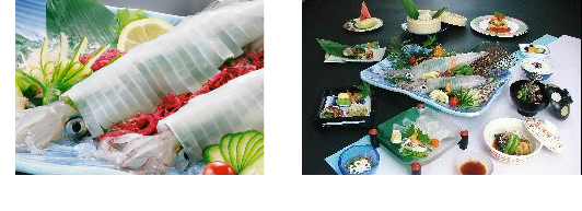 | イカ活造り (1杯) 後造り・・・塩焼または天ぷら |